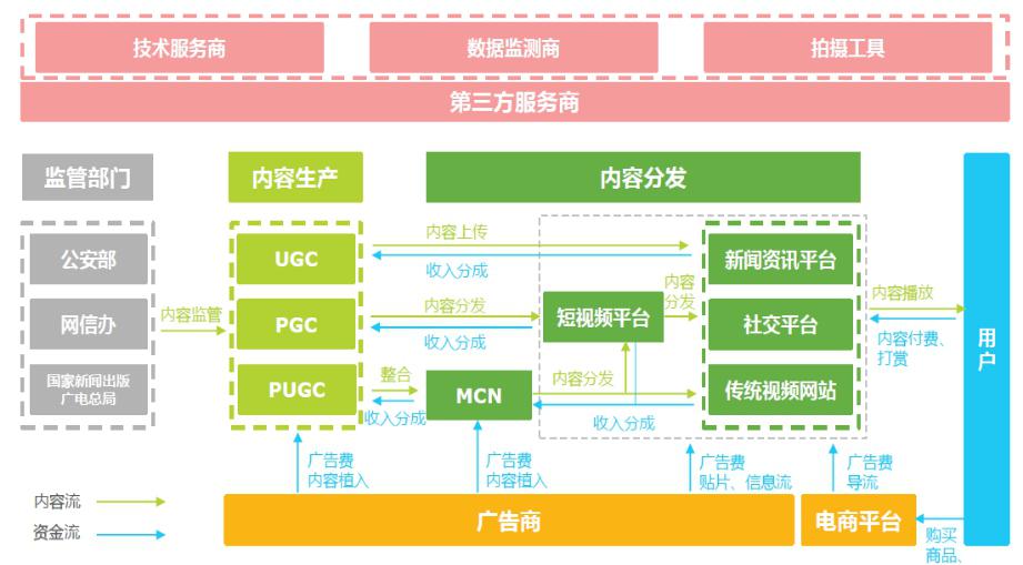 國(guó)內(nèi)短視頻的發(fā)展已經(jīng)構(gòu)成生產(chǎn)傳播完整鏈條,既有專門做內(nèi)容的機(jī)構(gòu),也有專門做平臺(tái)的機(jī)構(gòu),還有既做內(nèi)容又做平臺(tái)的機(jī)構(gòu)。