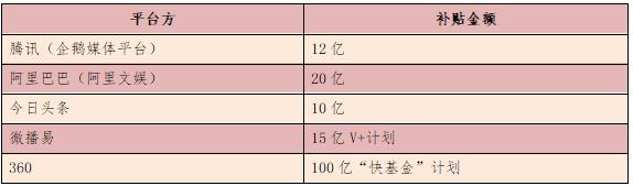 2017年多個(gè)短視頻平臺(tái)補(bǔ)貼措施