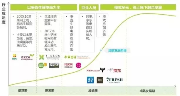 1、中國生鮮電商行業(yè)歷經(jīng)探索、高速發(fā)展、洗牌之后,進(jìn)入了成長期轉(zhuǎn)型升級階段。