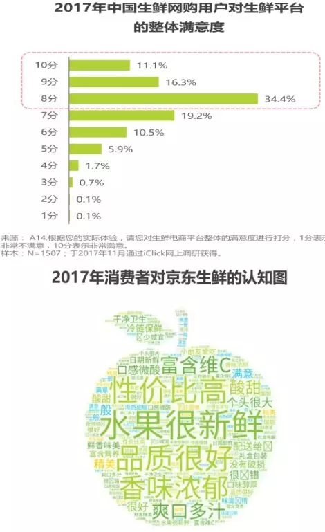 生鮮網(wǎng)購用戶對品類豐富度最滿意,京東生鮮滿意度均高于行業(yè)整體,物流配送優(yōu)勢明顯。