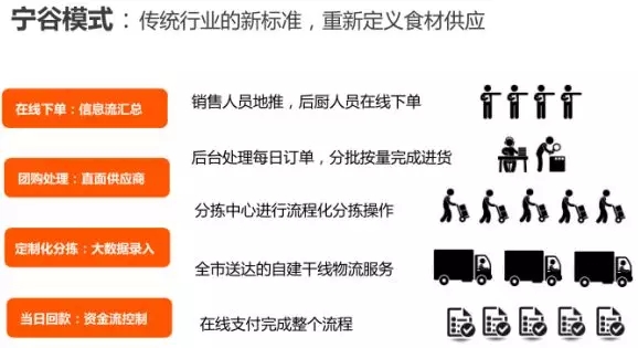 寧谷物配以“易訂貨”軟件為依托,欲打造區(qū)內(nèi)最大的城市商用食材供應(yīng)鏈平臺;其商業(yè)模式是用平臺化團(tuán)購方式+城市內(nèi)自建物流配送體系,實(shí)現(xiàn)對城市餐飲商戶所需食材的全方位供應(yīng)。其生鮮B2B模式在銀川城區(qū)已初具規(guī)模,具有代表性,本報(bào)告將著重分析。