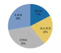 從進(jìn)口集成電路產(chǎn)品的類別來看,微處理器/控制器進(jìn)口額位列榜首,2014年價值高達(dá)1052.2億美元,占比48.33%;接著是半導(dǎo)體存儲器,2014年價值達(dá)542.8億美元,占比24.93%,之后是放大器,占比4.13%。
