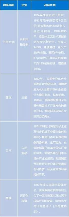 根據(jù)中國臺灣、韓國等國家/地區(qū)半導(dǎo)體產(chǎn)業(yè)發(fā)展的經(jīng)驗,政府的扶持具有不可替代的作用。臺灣地區(qū)1974年成立臺灣工研院,1987年成立臺積電,并在其上投入了8年后,才實現(xiàn)盈虧平衡,走上獨(dú)立的發(fā)展的道路;韓國政府通過為國內(nèi)半導(dǎo)體企業(yè)提供大量的財政、稅收優(yōu)惠來支持本國半導(dǎo)體產(chǎn)業(yè)的發(fā)展。因此,政府的持續(xù)投入是IC制造和發(fā)展的必要條件。